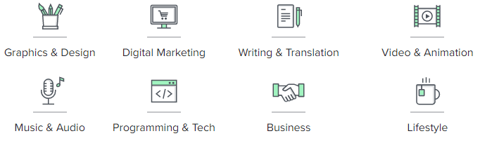 উপরের চিত্রটি ফাইভার মার্কেটপ্লেস থেকে নেওয়া। ফাইভার মার্কেটপ্লেসে গ্রাফিক্স ডিজাইন, ডিজিটাল মার্কেটিং, আর্টিকেল রাইটিং, ভিডিও এডিটিং, ওয়েব ডেভেলপমেন্ট ও লাইফস্টাইল সহ বিভিন্ন বিষয়ে ডিমান্ড রয়েছে। তাছাড়া এই ধরনের প্রত্যেক কাজের ডিমান্ড সব ধরনের ফ্রিল্যান্সিং মার্কেটপ্লেসে রয়েছে।
